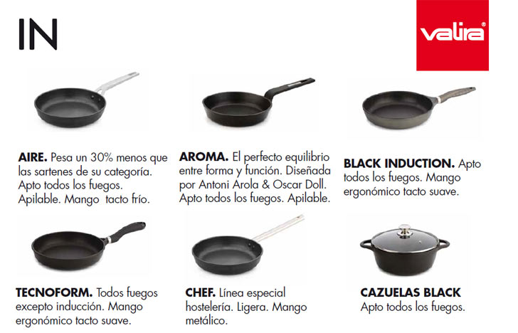 Fundada en el año 1970, Valira es la única marca experta en la fabricación de sartenes y cazuelas de aluminio fundido capaz de sellar sus productos con el «Made in Spain». Las piezas producidas en aluminio fundido e inyectadas a alta temperatura las convierten en indeformables, por lo tanto adquieren una gran resistencia y durabilidad manteniéndose en perfectas condiciones a lo largo del tiempo. El aluminio distribuye rápidamente el calor de forma uniforme, lo que permite una cocción regular y sana de los alimentos, conservando su sabor y los nutrientes.
